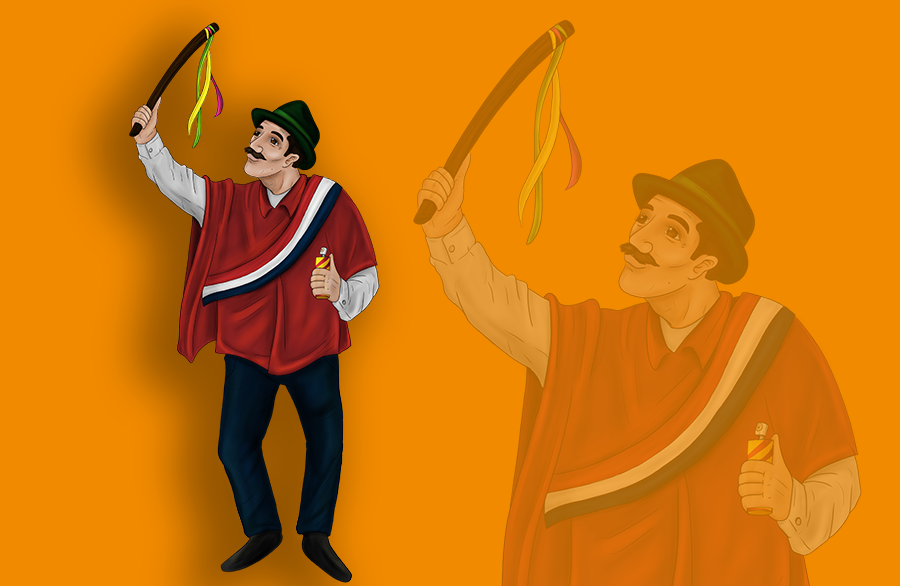 Simboliza la amabilidad de los guarandeños. Su poncho rojo representa a la serranía, el sombrero denota la fusión europea, el boyero (fuete para guiar a los bueyes) y el bastón de mando simbolizan el poder.