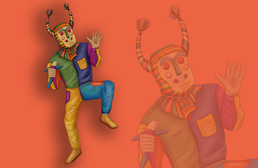 Es un personaje que muestra la dualidad tanto en su disfraz como en su comportamiento: riendo y llorando, siendo gracioso y grotesco, también junto con los Ajas representan la bondad y maldad de los seres humanos, ayudan a repartir la bebida y comida, mientras se burlan satíricamente de los presentes.